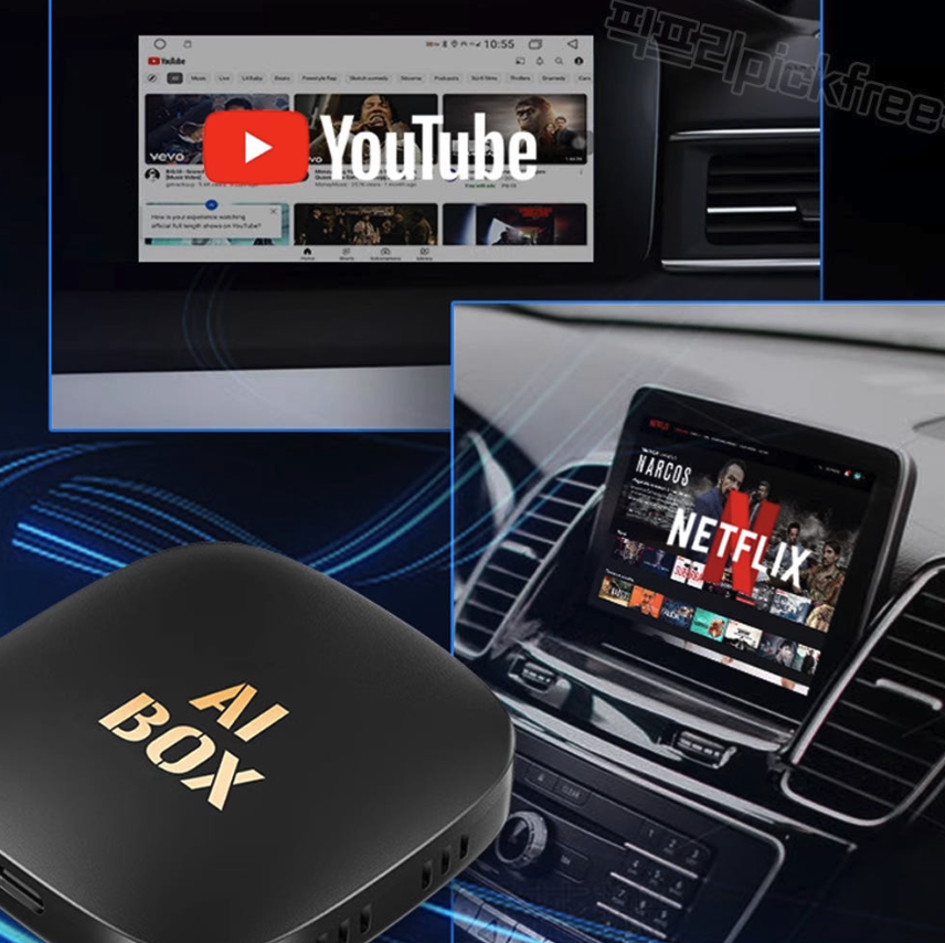 유선을 무선으로 바꿔주는 기능을 넘어, 넷플릭스/유튜브를 볼 수 있는 'AI Box' 기능이 탑재된 제품이 인기입니다. - 기술 체크