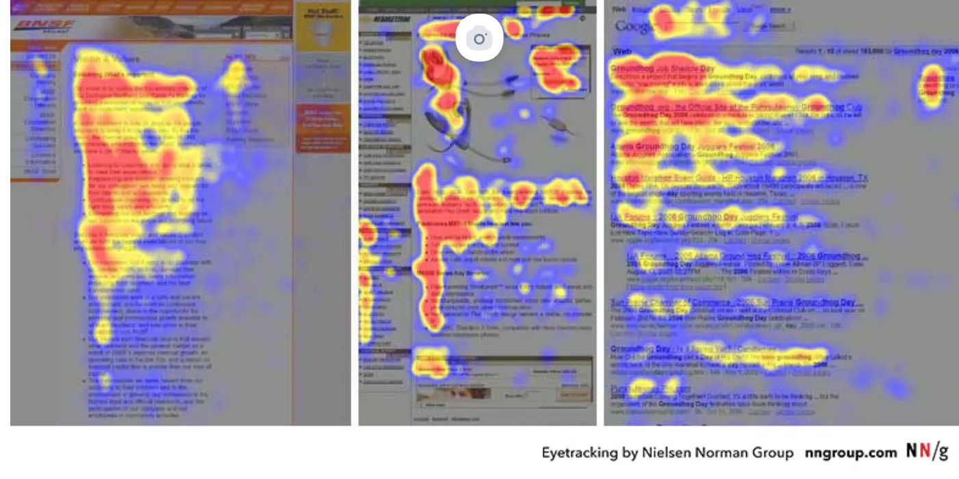 어떤 모양이 보이시나요? 마치 알파벳 'F'자 형태를 띠고 있지 않나요? 이것이 바로 전 세계 수많은 사용자에게 공통으로 나타나는 시야의 흐름, 즉 'F-패턴'입니다.
