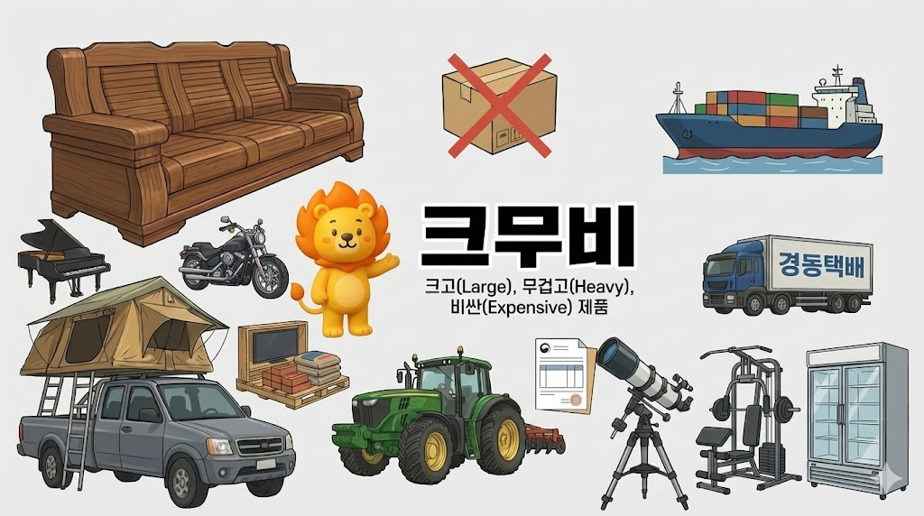 이 세 가지 조건은 초보 셀러들에게는 '피하고 싶은 악조건'입니다. 항공 특송으로 보내기도 어렵고, 해상 운송을 알아봐야 하며, 배송 중 파손 걱정에 경동택배 이관까지 신경 써야 하기 때문입니다. 대표적으로 대형 가구(소파, 조명), 산업용 기계(농기계, 공작 기계), 대형 레저 장비(루프탑 텐트) 등이 여기에 속합니다.