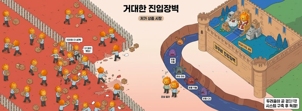 개인 셀러가 가격과 배송 속도로 대형 플랫폼을 이기는 것은 불가능합니다. 우리가 이 '승자 없는 가판대 싸움'에서 탈출해 생존하려면, 필연적으로 아직 경쟁자가 적고 진입장벽이 존재하는 새로운 영역으로 시선을 돌려야만 합니다.